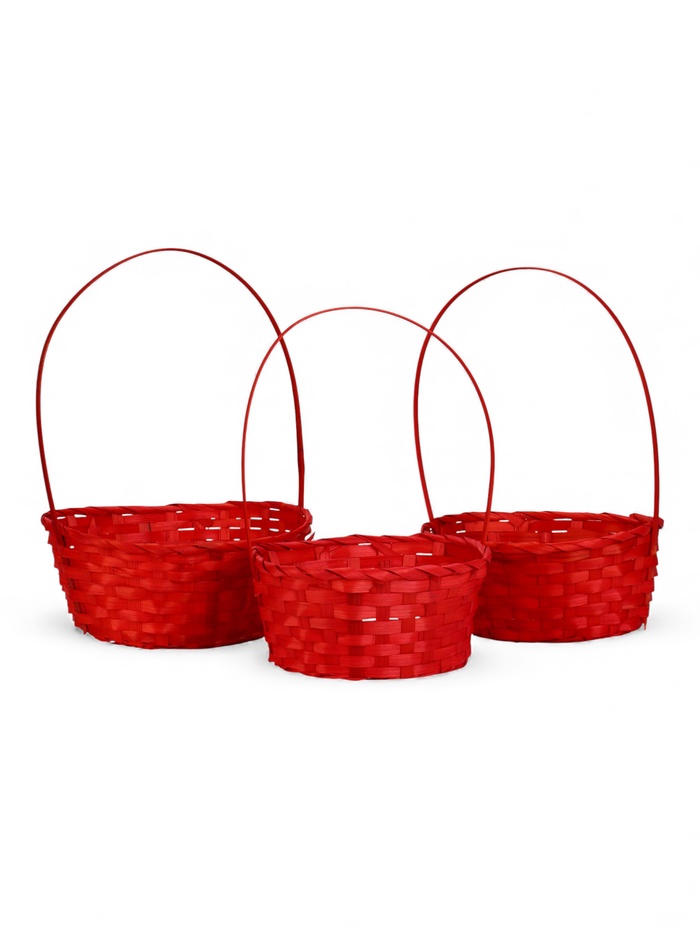 Корзина плетёная для хранения, бамбук, красная, набор 3 шт., Greengo