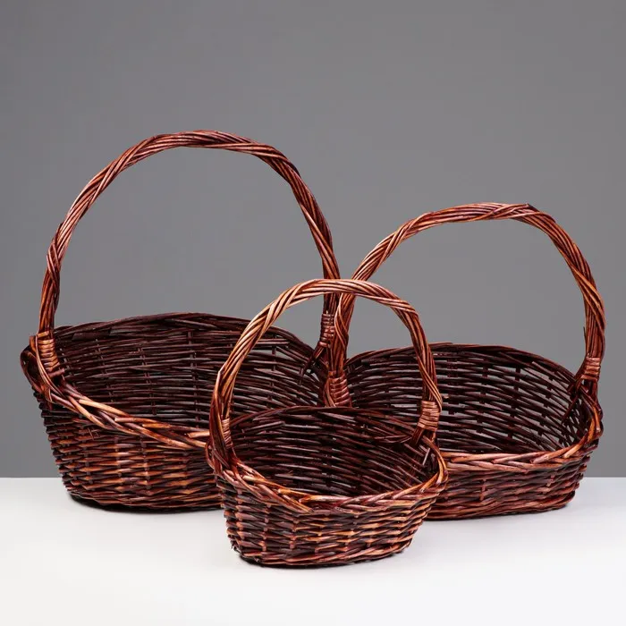 Набор плетеных корзин, 3 шт, 38х30х9/17, 25х20х7/12 см, темный, ива