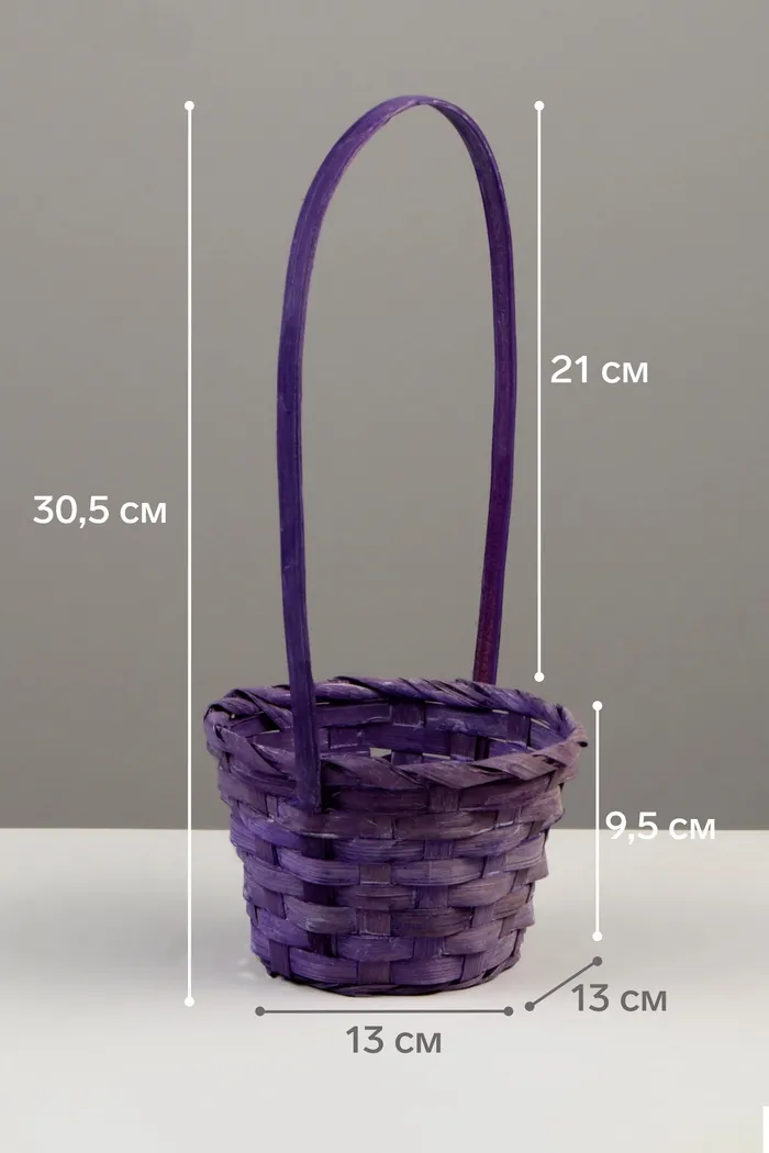 Корзина плетёная, 13×13×9.5 см, ручка h=21 см, бамбук, фиолетовая