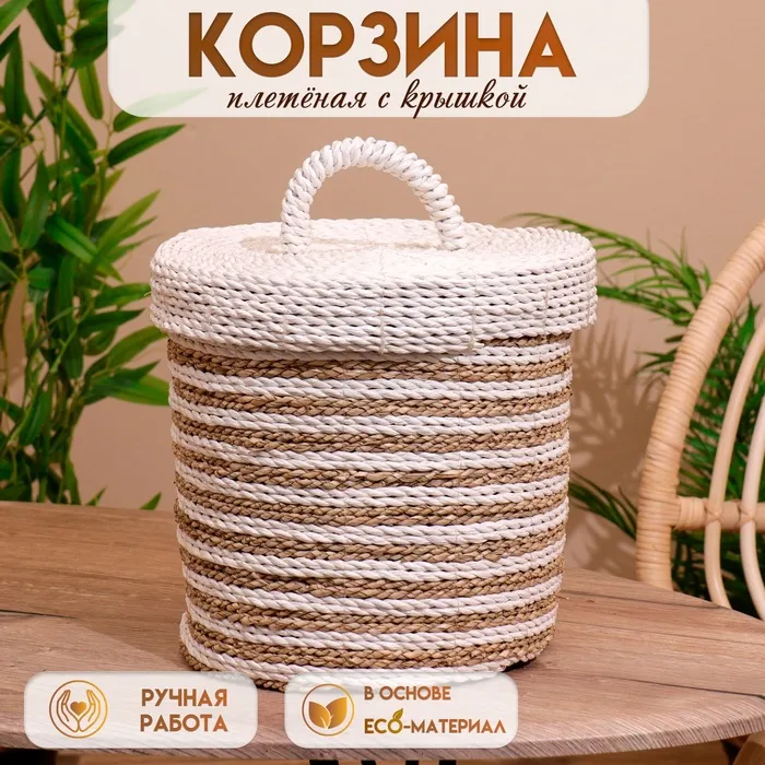 Корзина плетёная с крышкой 27х27х35 см