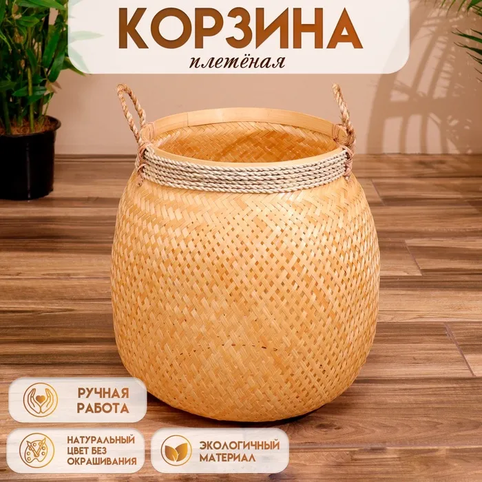 Корзина плетёная, из бамбука 40х40х40 см