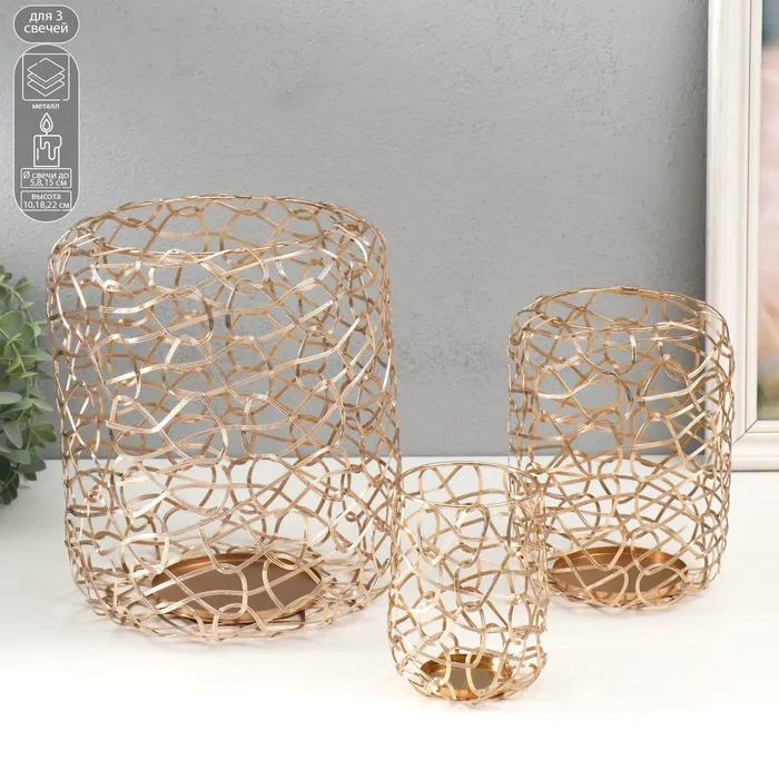 Металлический подсвечник на 1 свечу «Лофт. Переплетение», набор 3 шт., d=5;8;15 см; 8×10 см, 10×18 см, 15×22 см