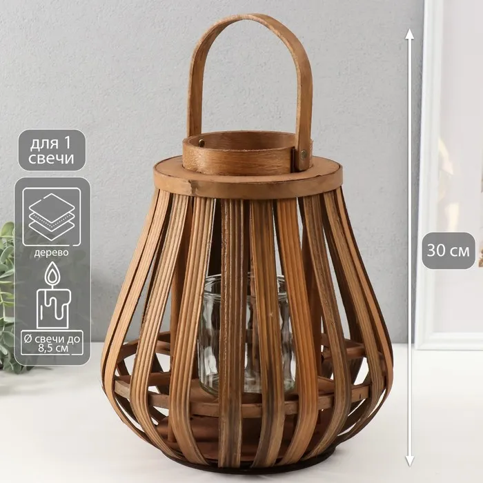 Деревянный подсвечник-фонарь на 1 свечу «Эко-фонарь», коричневый 12×27×30 см