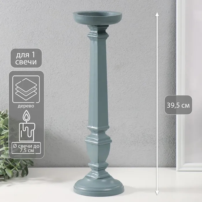 Деревянный подсвечник на 1 свечу «Греция», серо-сиреневый, 11.5×11.5×39.5 см