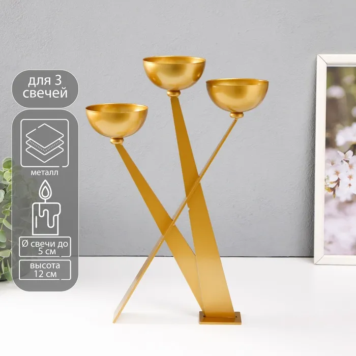 Металлический подсвечник на 3 свечи «Николь», d=8 см, 23×8×33.5 см