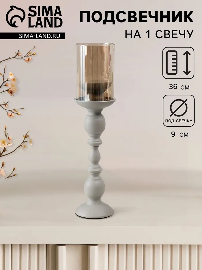 Металлический подсвечник на 1 свечу d=9 см «Хевард», серый, d=9 см, 10×10×36 см