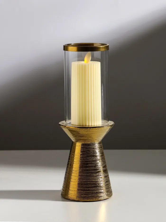 Подсвечник на 1 свечу «Пустыня», керамика, стекло, d=8 см, золото, 9.5×9.5×27 см