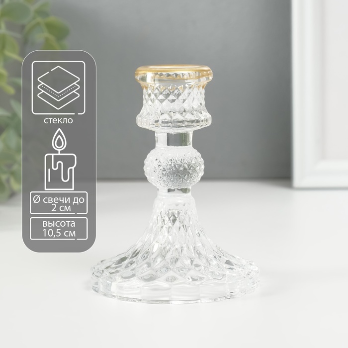 Подсвечник стекло на 1 свечу "Женева" с золотом d=2 см 10,5х7,7х7,7 см