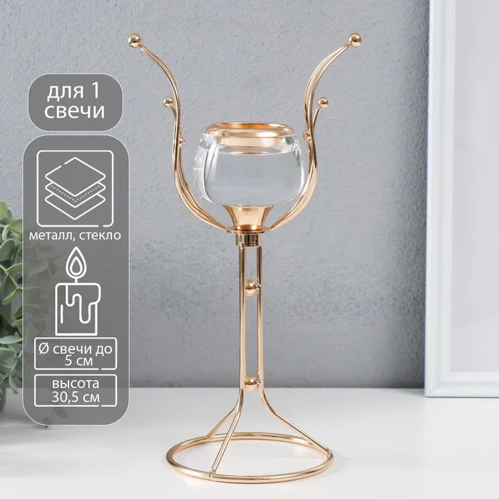 Подсвечник металл на 1 свечу «Сфера», d= 5 см, 12×12×30 см