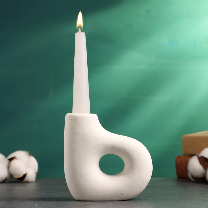Подсвечник металл на 1 свечу "Моно", 14х7,3 см, белый