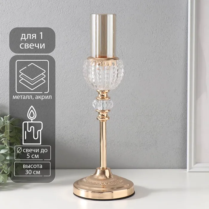 Подсвечник на 1 свечу d=9.5 см «Юнона», металл, стекло, золото, 13×13×39 см