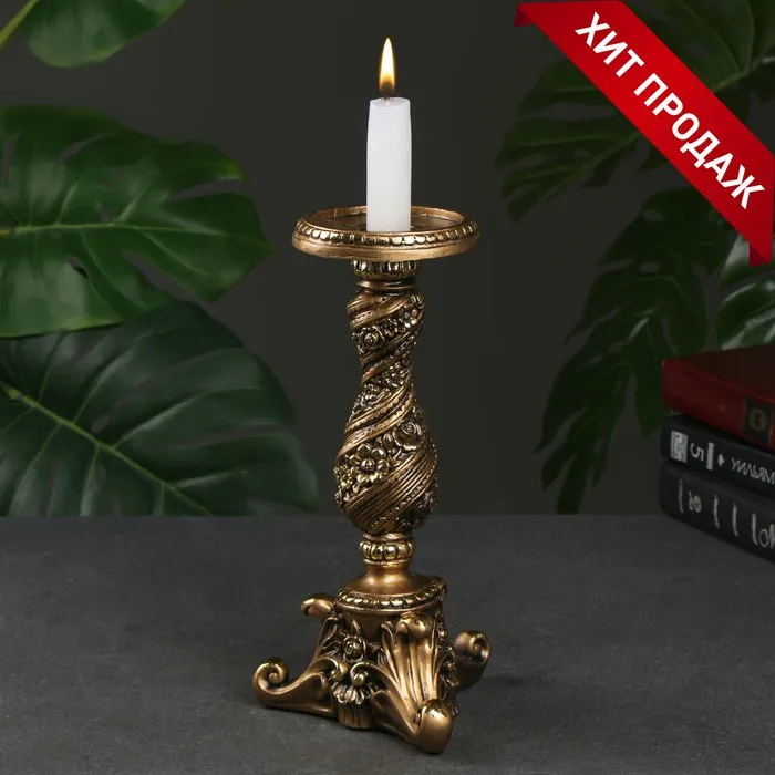 Подсвечник стекло на 1 свечу "Королевский узор" золото 11х5,5х5,5 см