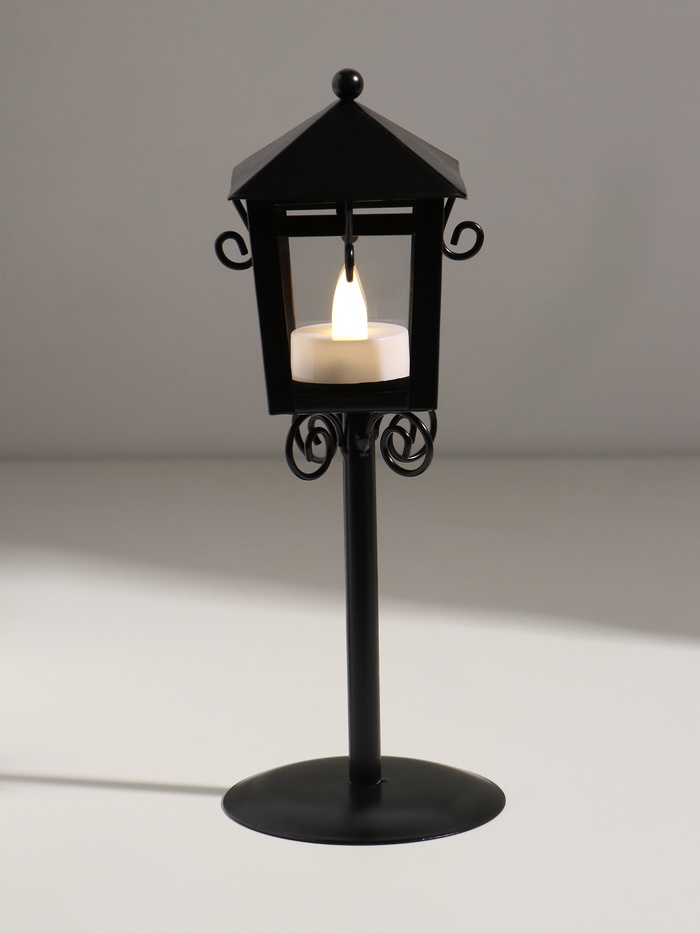 Подсвечник на 1 свечу «Фонарь», металл, чёрный, 24×9×9 см