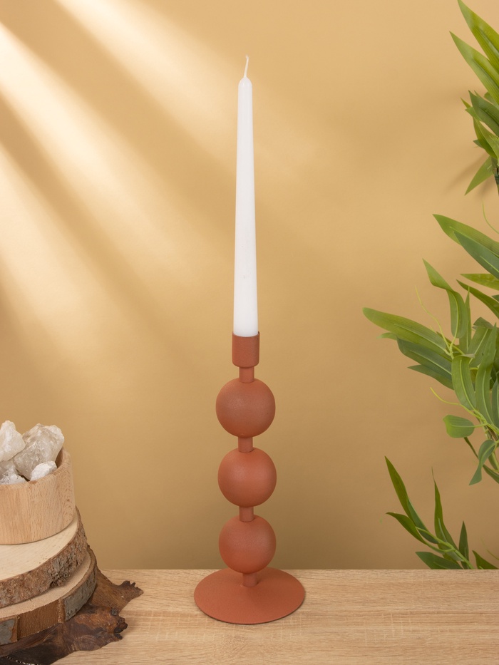 Подсвечник на 1 свечу текстурный «Терракотовый», с 3 сферами, 10×10×25 см
