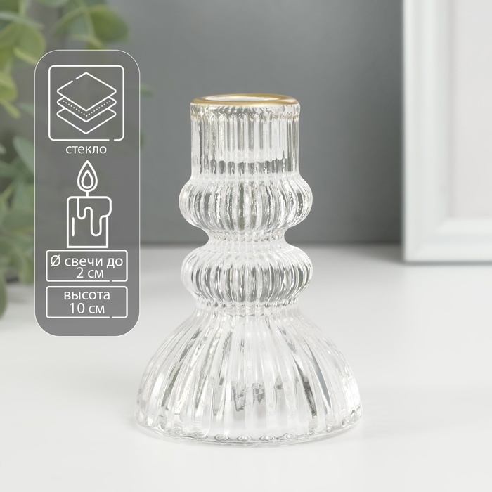 Стеклянный подсвечник на 1 свечу «Водопад. Колонна», с золотом, d=2 см, 7×7×10 см