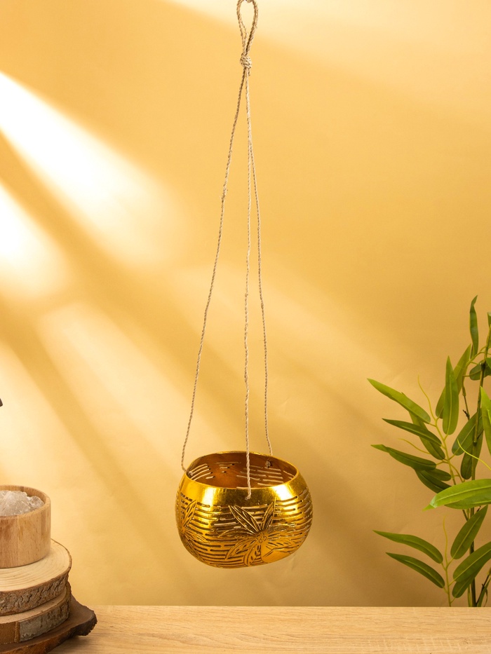 Подсвечник подвесной из кокоса, 9-12 см, золотистый