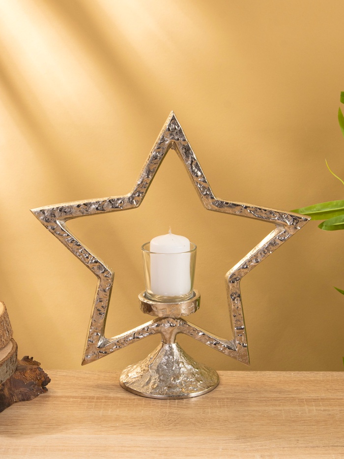Подсвечник со стеклом «Звезда», 28×10.5×29.5 см, алюминий