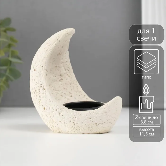 Подсвечник на 1 свечу «Месяц», гипс, металл, d=3.8 см, 7.5×10×11.5 см