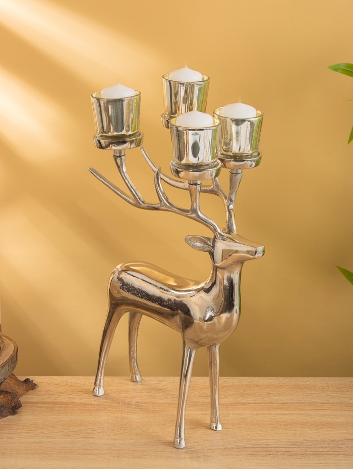 Подсвечник на 4 свечи «Олень», 17×26.5×38 см, алюминий