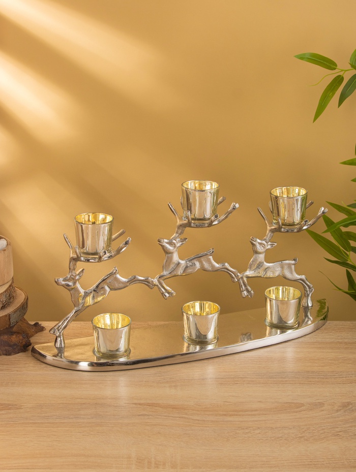 Подсвечник на 4 свечи «Трио оленей», 30×9×15 см, алюминий