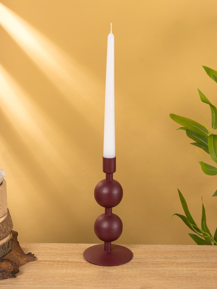 Подсвечник на 1 свечу текстурный «Баклажановый», с 2 сферами, 8.5×8.5×18 см