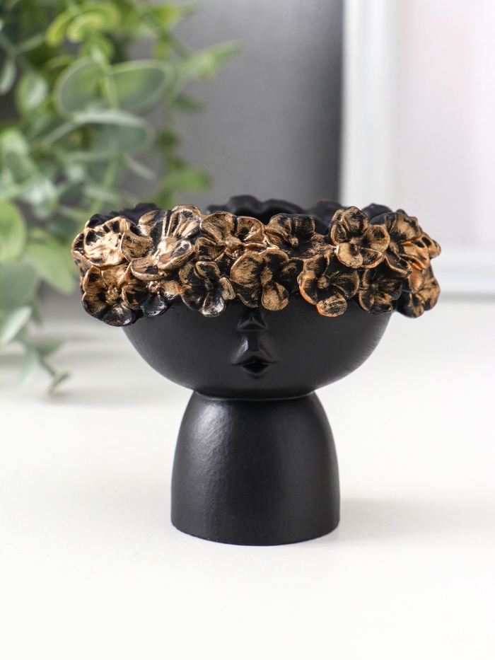 Подсвечник на 1 свечу «Девочка в венке малая», 7.5×9×8 см, чёрный