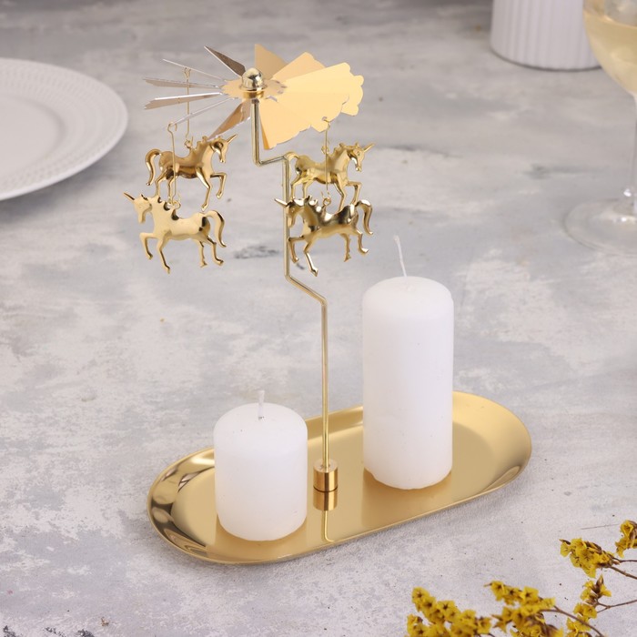 Подсвечник металлический «Карусель с единорогами», золотая, 8.5×18 см