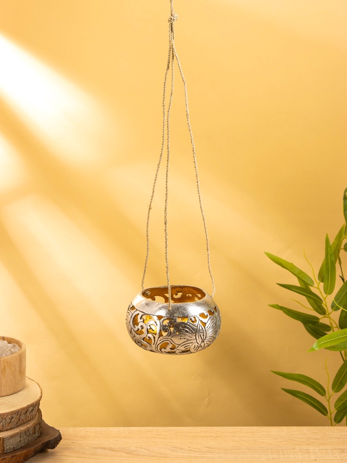 Подсвечник подвесной из кокоса, 10-12 см, серебристый