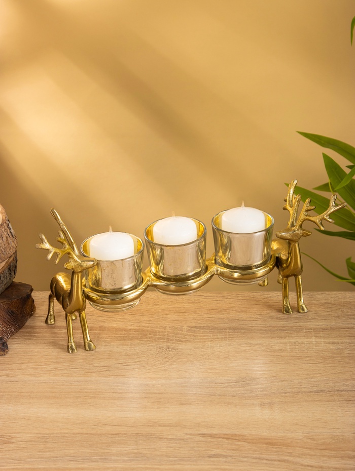 Подсвечник на 3 свечи «Оленята», 29×8×13 см, алюминий