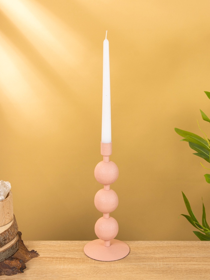 Подсвечник на 1 свечу текстурный «Пудровый розовый», с 3 сферами, 10×10×25 см