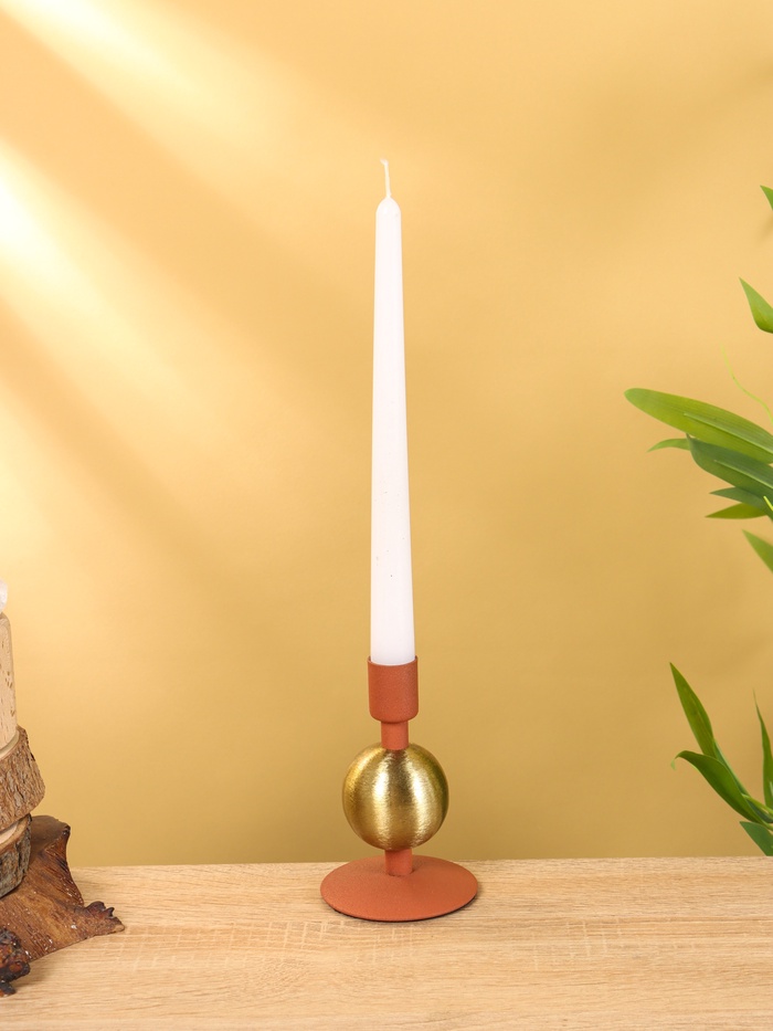 Подсвечник на 1 свечу текстурный «Терракотовый», с 1 сферой, 7.5×7.5×11.5 см
