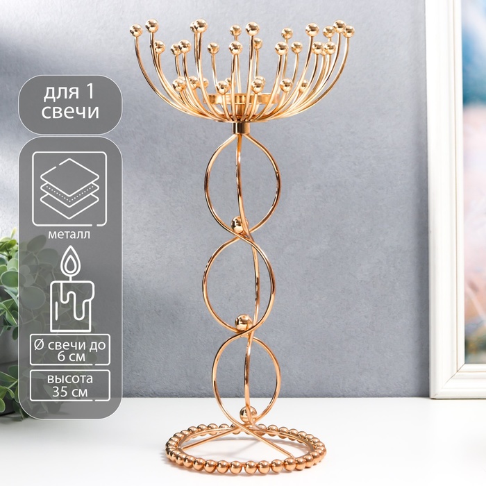 Подсвечник металл на 1 свечу "Временная петля с шариками" золото 35х13х13 см