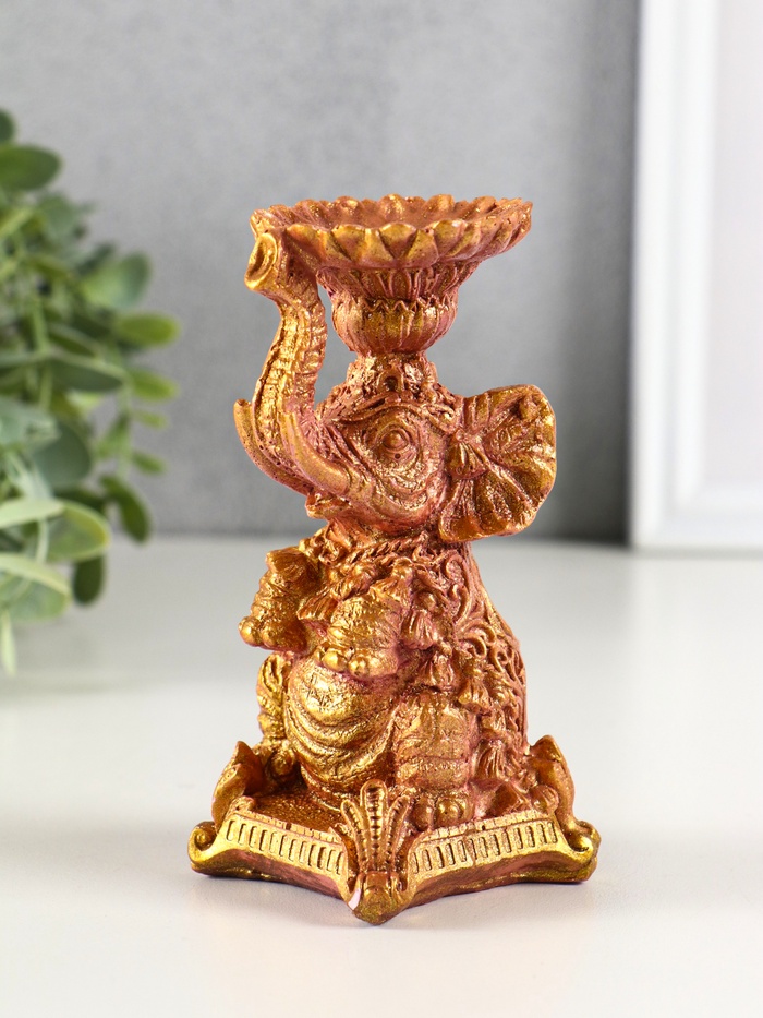 Подсвечник на 1 свечу «Слон» высота, гипс, 12 см, бордо с позолотой