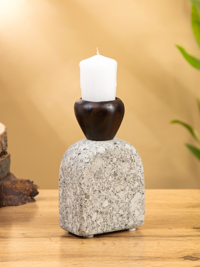 Подсвечник «Каменный факел», 8×5×15 см, камень, дерево