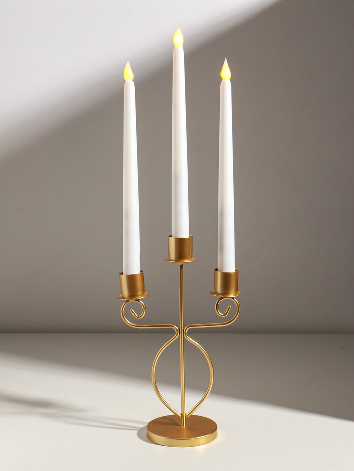 Подсвечник на 3 свечи «Канделябр», d=2.5 см, металл под золото, 14.5×8×24 см