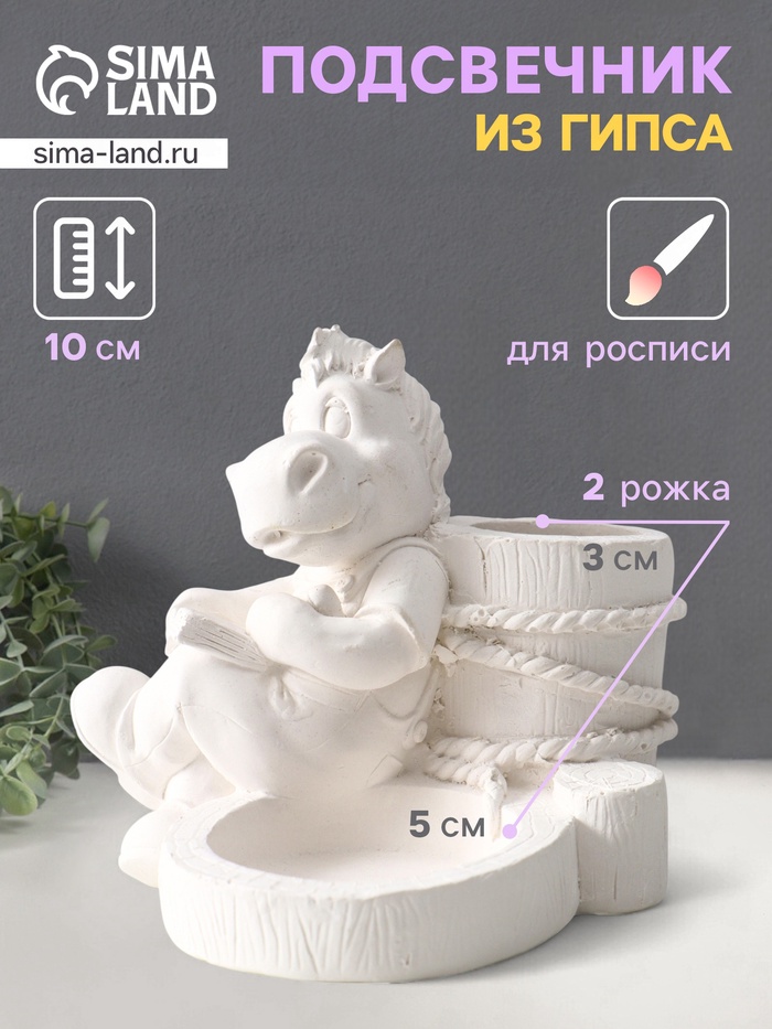 Подсвечник на 2 свечи «Конь с книгой», гипс, 10×11×11 см, натуральный