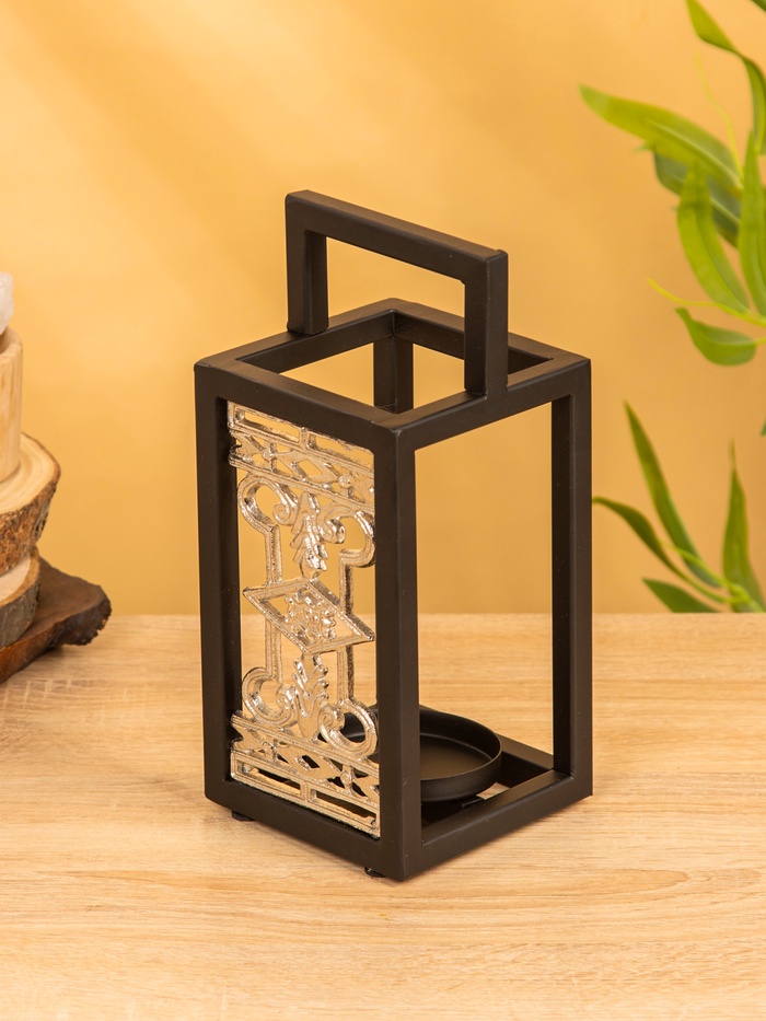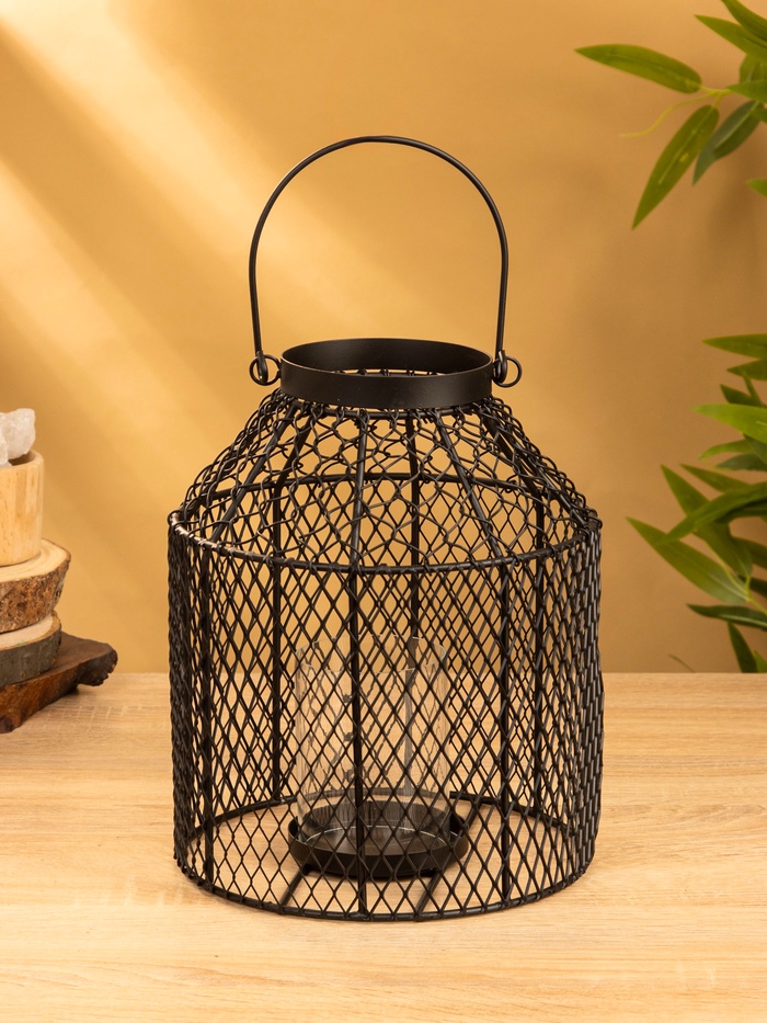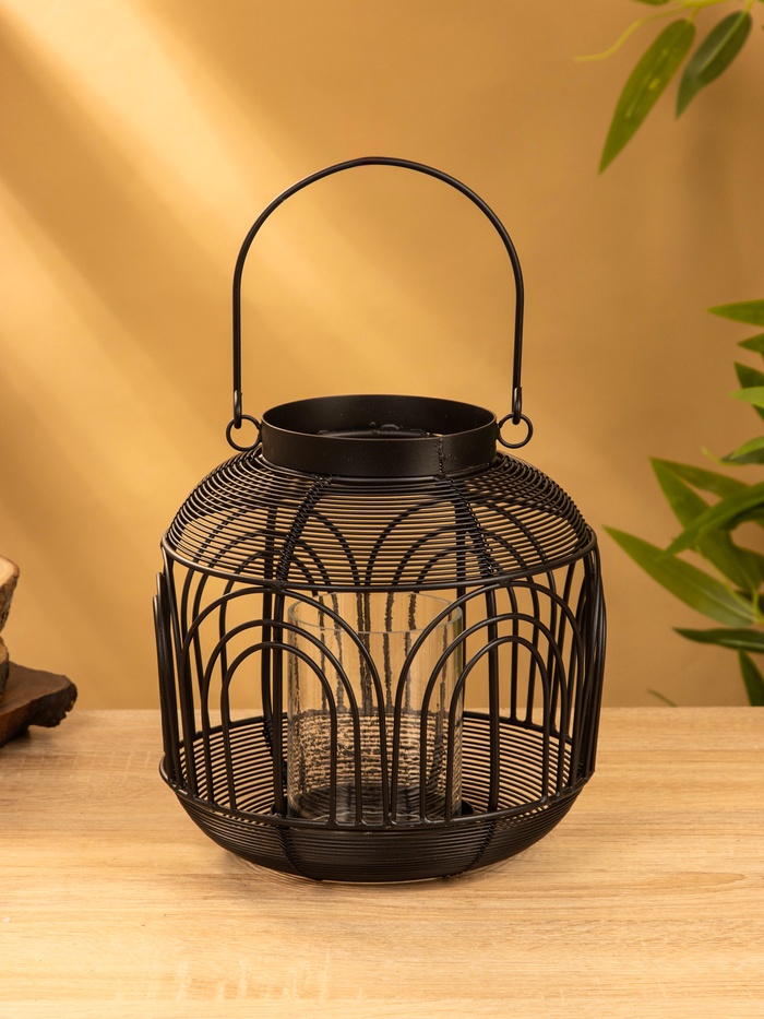 Подсвечник фонарь со стеклянной колбой, 19×19×19.5 см, d=8.5 см, металл, чёрный