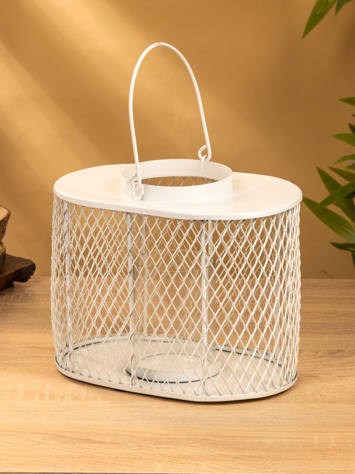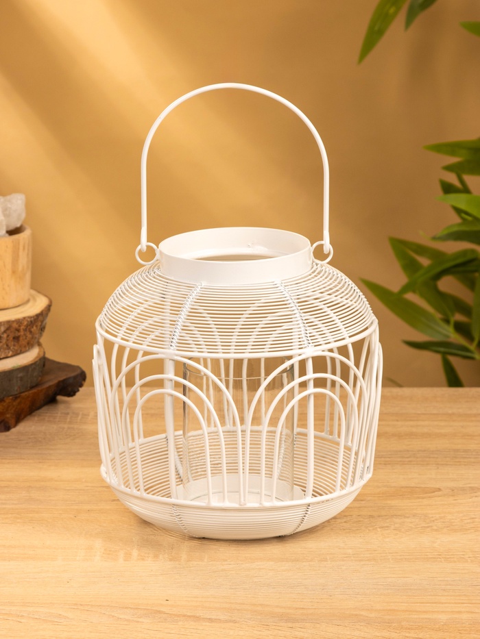 Подсвечник фонарь со стеклянной колбой, 19.5×23×15.5 см, d=10 см, металл, белый