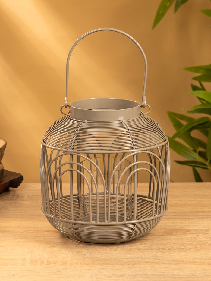 Подсвечник фонарь со стеклянной колбой, 19×19×19.5 см, d=8.5 см, металл, серый