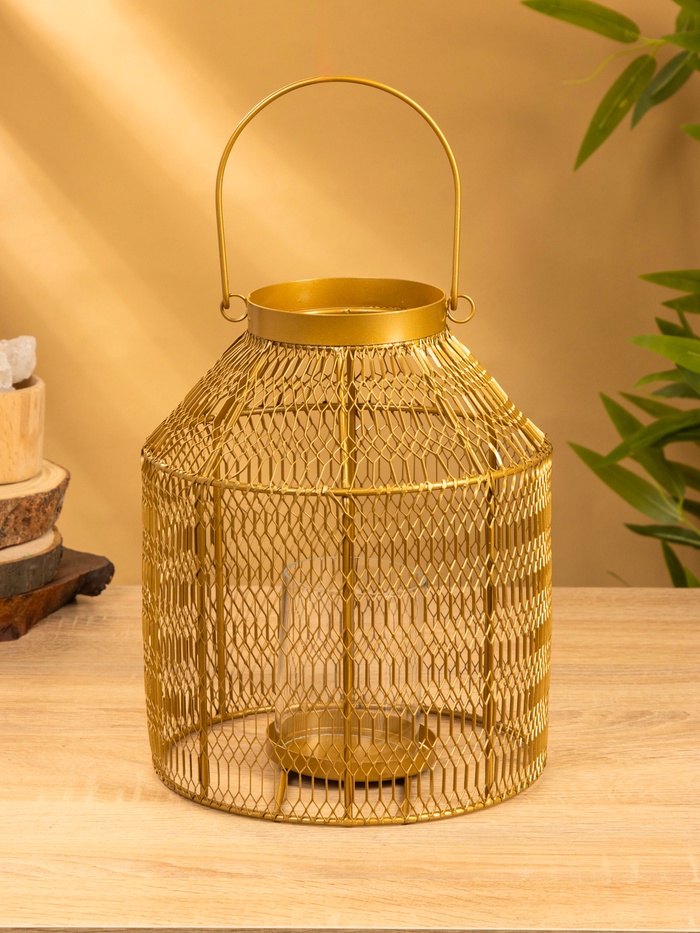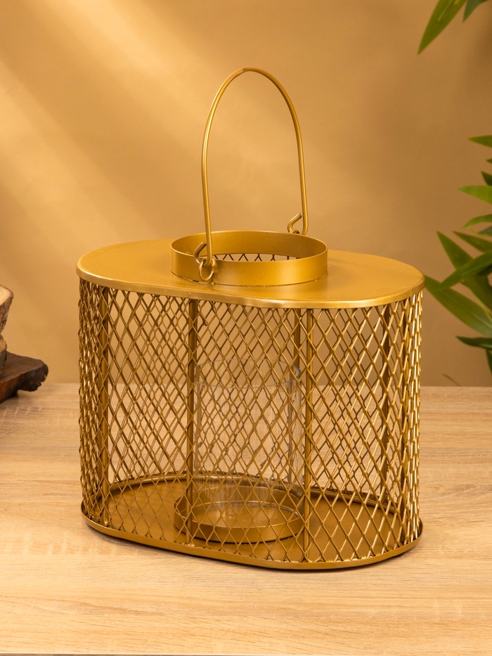 Подсвечник фонарь со стеклянной колбой, 19.5×23×15.5 см, d=10 см, металл, золотистый
