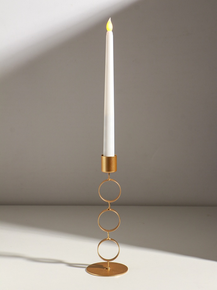 Подсвечник на 1 свечу «Три кольца», d=2.5 см, металл под золото, 7.5×7.5×21 см