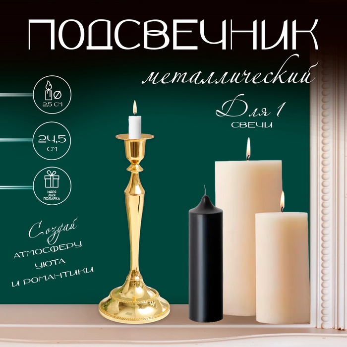 Металлический подсвечник на 1 свечу «Сканди», золото, 24.5×10×10 см