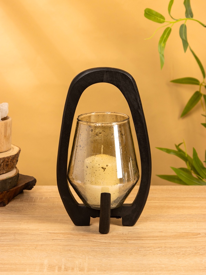 Подсвечник «Аура», 18×19×33 см, стекло, дерево