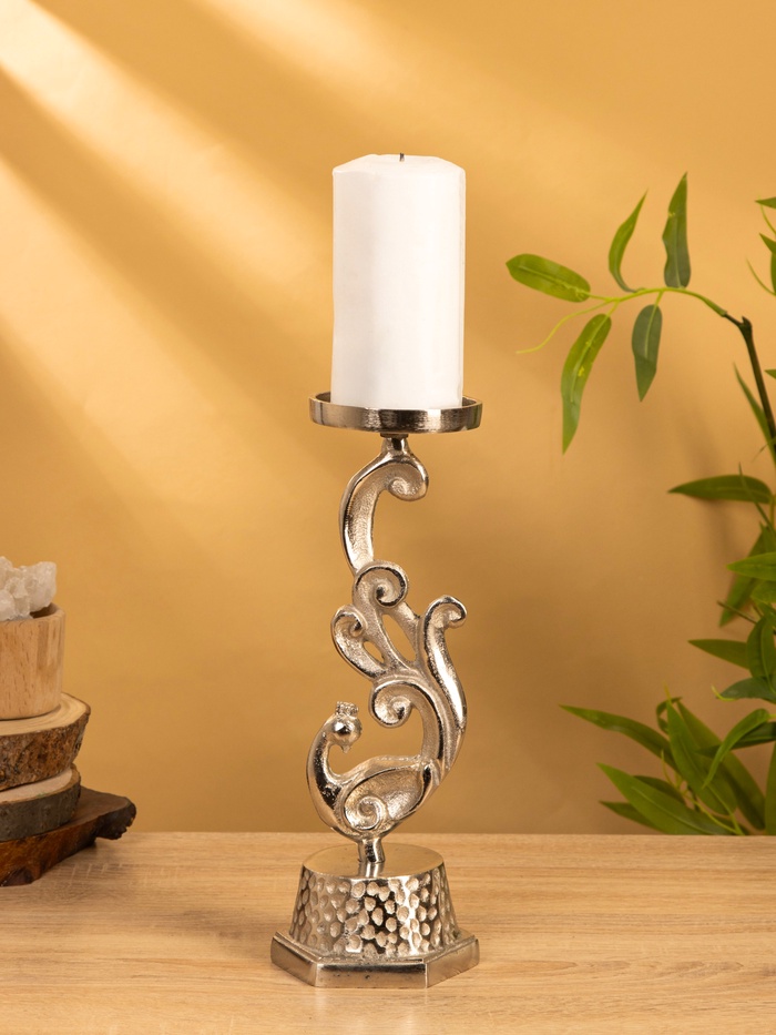 Подсвечник «Жар-птица», 11×11×30 см, алюминий, серебристый