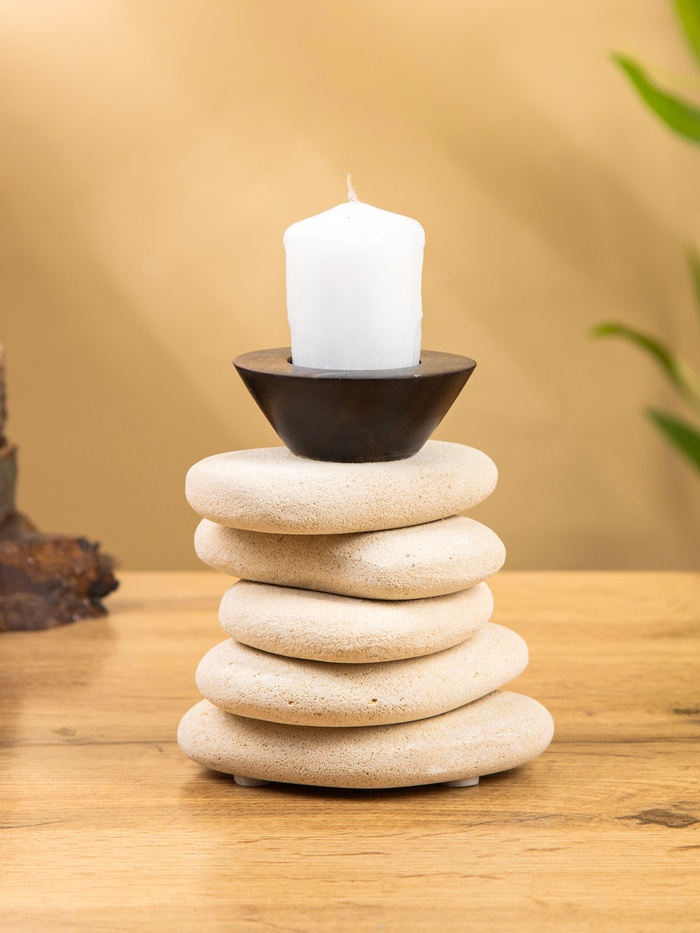 Подсвечник «Каменная башня», 10×10×13 см, камень, бежевый