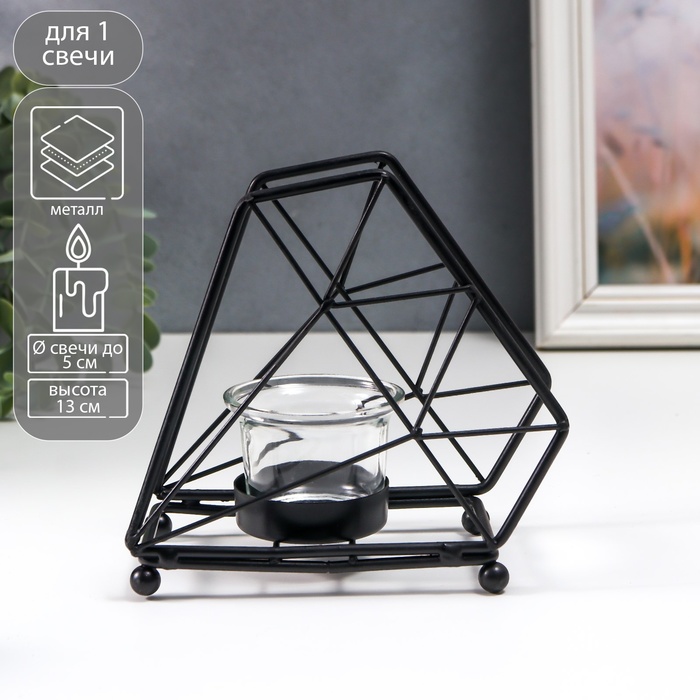Подсвечник металл, стекло на 1 свечу "Лофт. Трапеция" чёрный 13х8х15 см