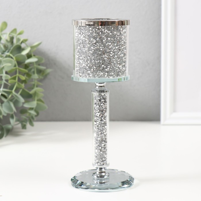 Подсвечник на 1 свечу d=4.5 «Орлеан», стекло, серебристый, 7×7×18 см