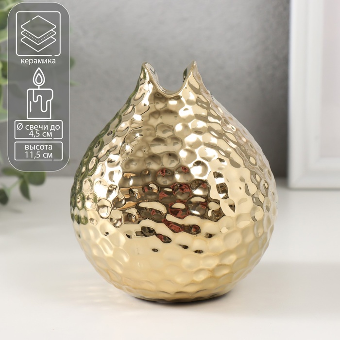 Подсвечник керамика на 1 свечу «Гранат», d=4.5 см, золото, 10×10×11.5 см