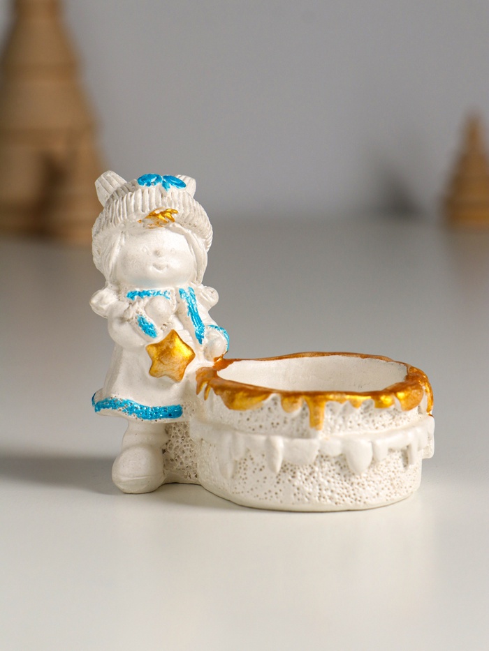 Подсвечник на 1 свечу «Девочка с корзинкой», гипс, 7×7 см, перламутр