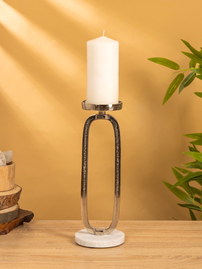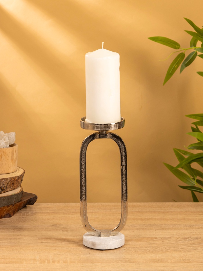 Подсвечник «Эллипс», 9×8.5×24.5 см, d=7.5 см, алюминий, мрамор
